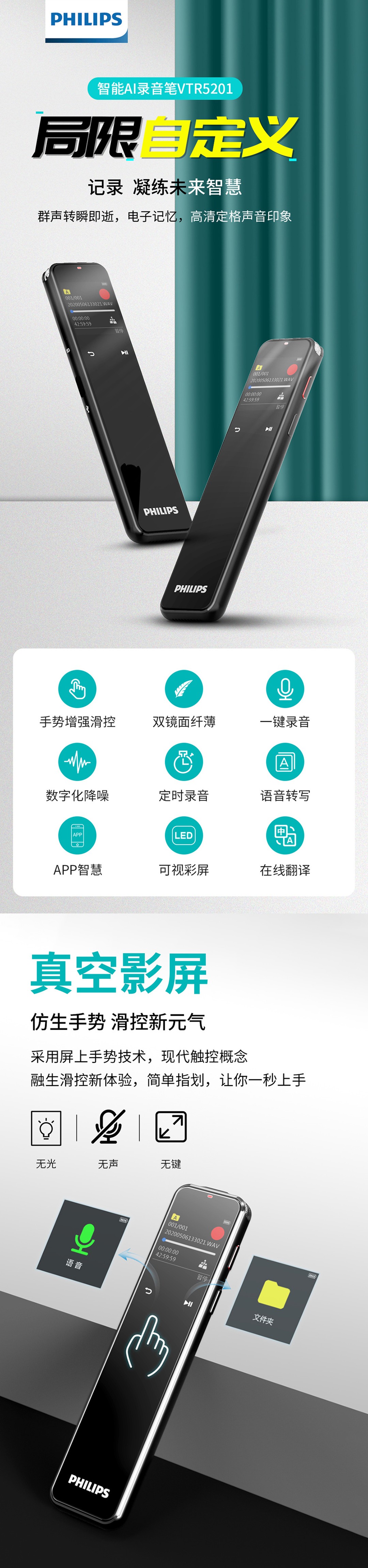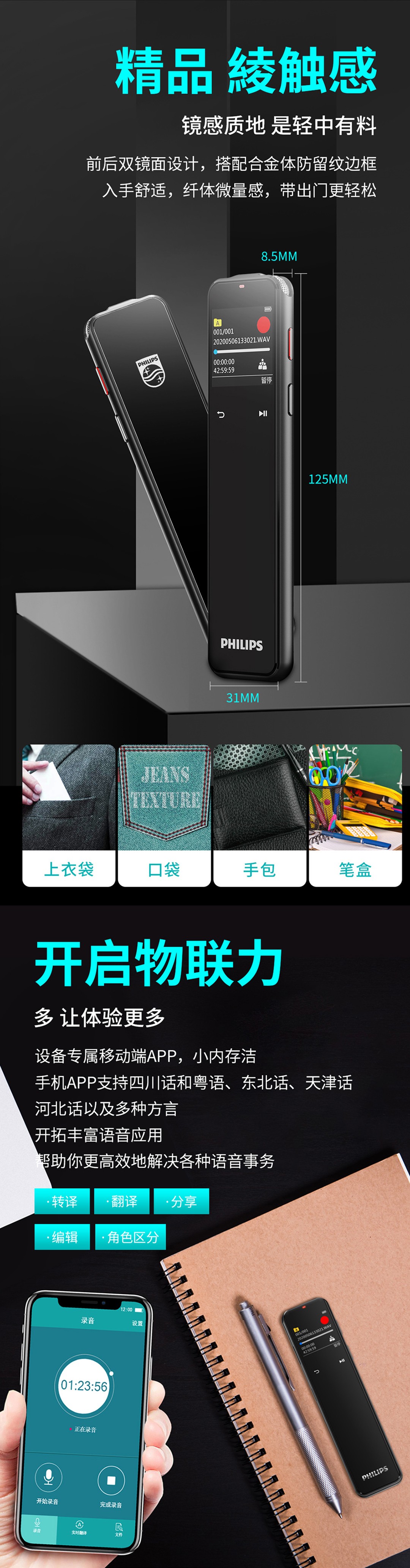 出眾的不僅是專業(yè)級的錄音效果,智能轉(zhuǎn)寫轉(zhuǎn)譯的便捷,高清彩屏,任意方向觸控同樣帶給您非一般的后現(xiàn)代體驗。