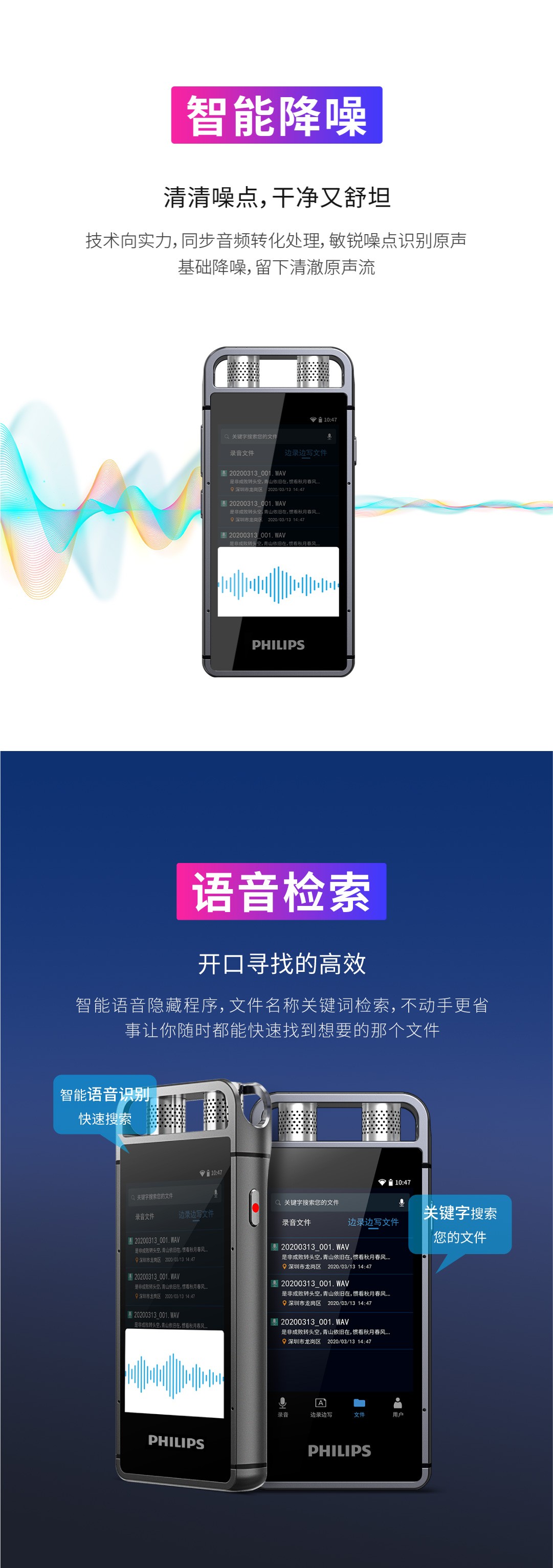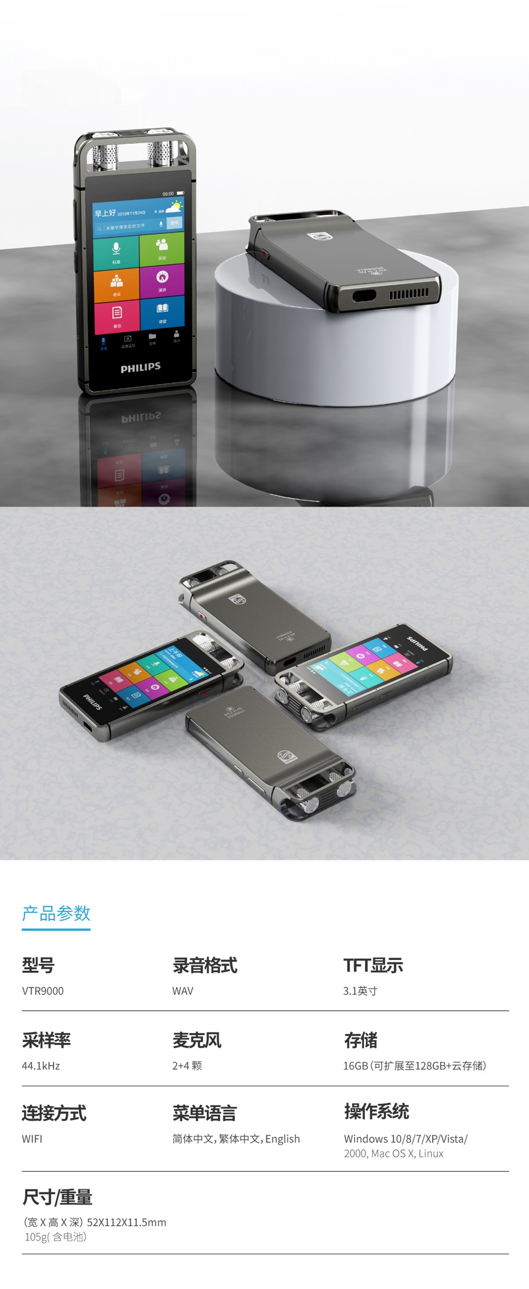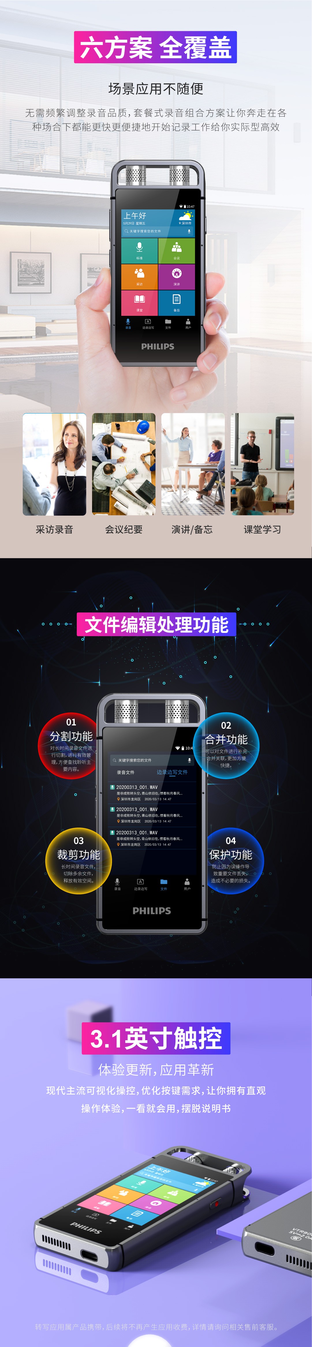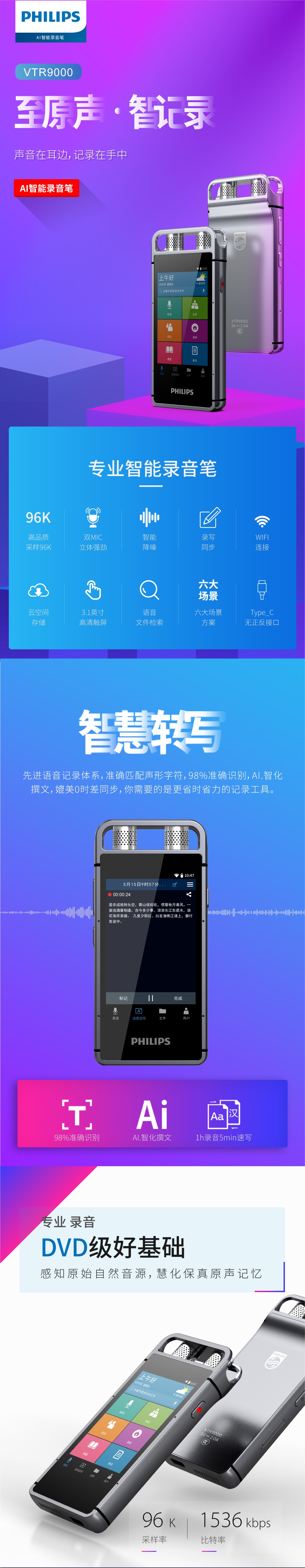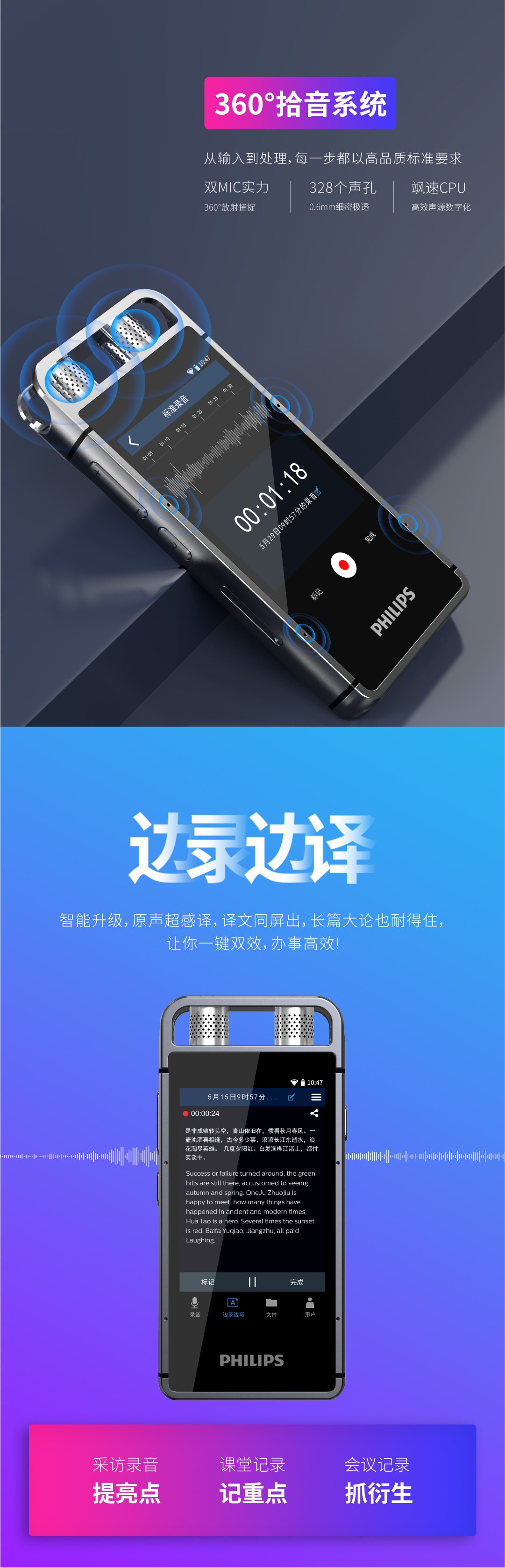 出眾的不僅是專業(yè)級(jí)的錄音效果,智能轉(zhuǎn)寫轉(zhuǎn)譯的便捷,高清彩屏,任意方向觸控同樣帶給您非一般的后現(xiàn)代體驗(yàn)。